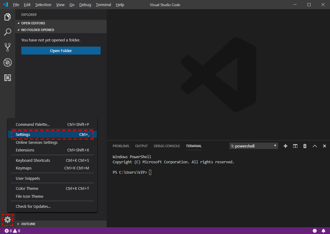 VSCode의 장점이라고 하면 툴안에서  1. 설정이동.