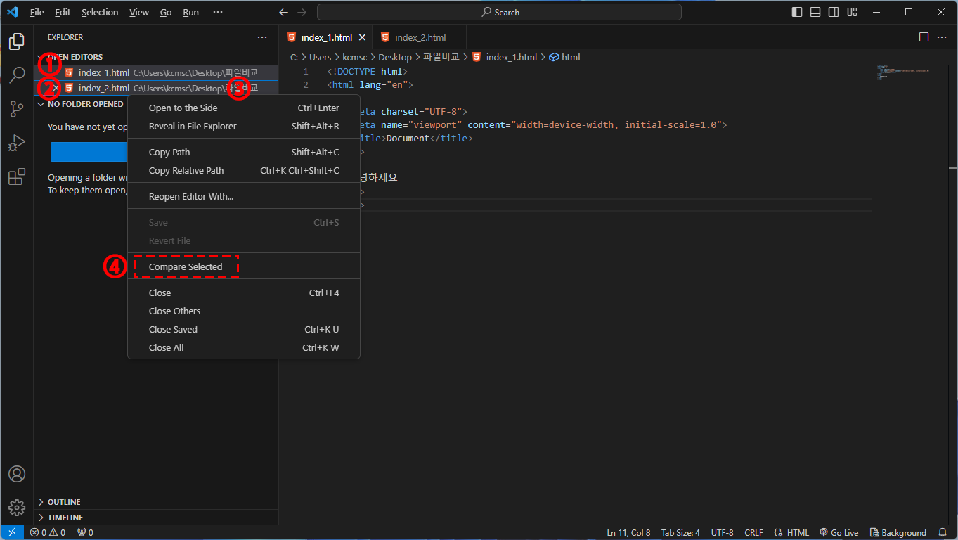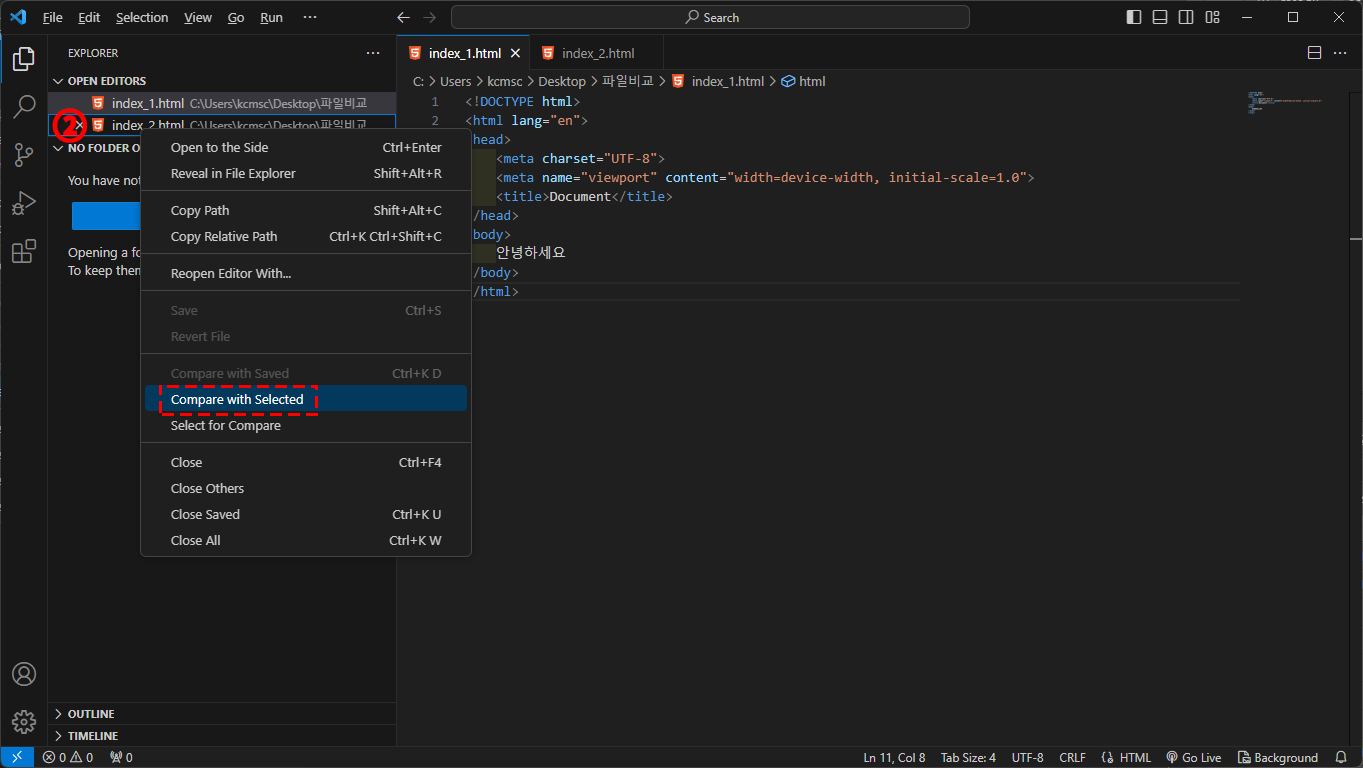 [VS Code] VS Code에서 두개의 파일 비교하기 본문